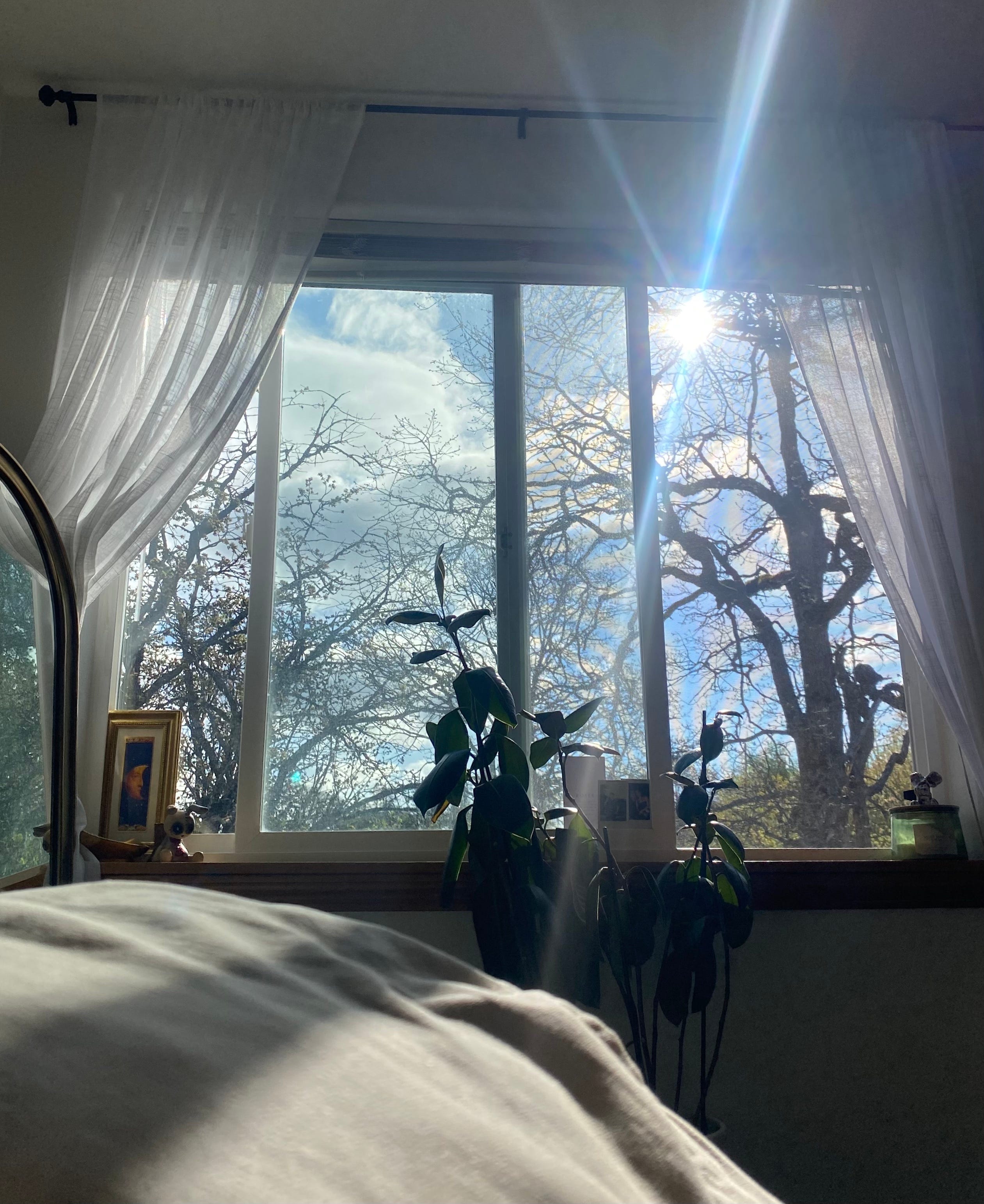 The scent of wet soil and slow sway of oak branch shadows moved through my bedroom like an invitation.